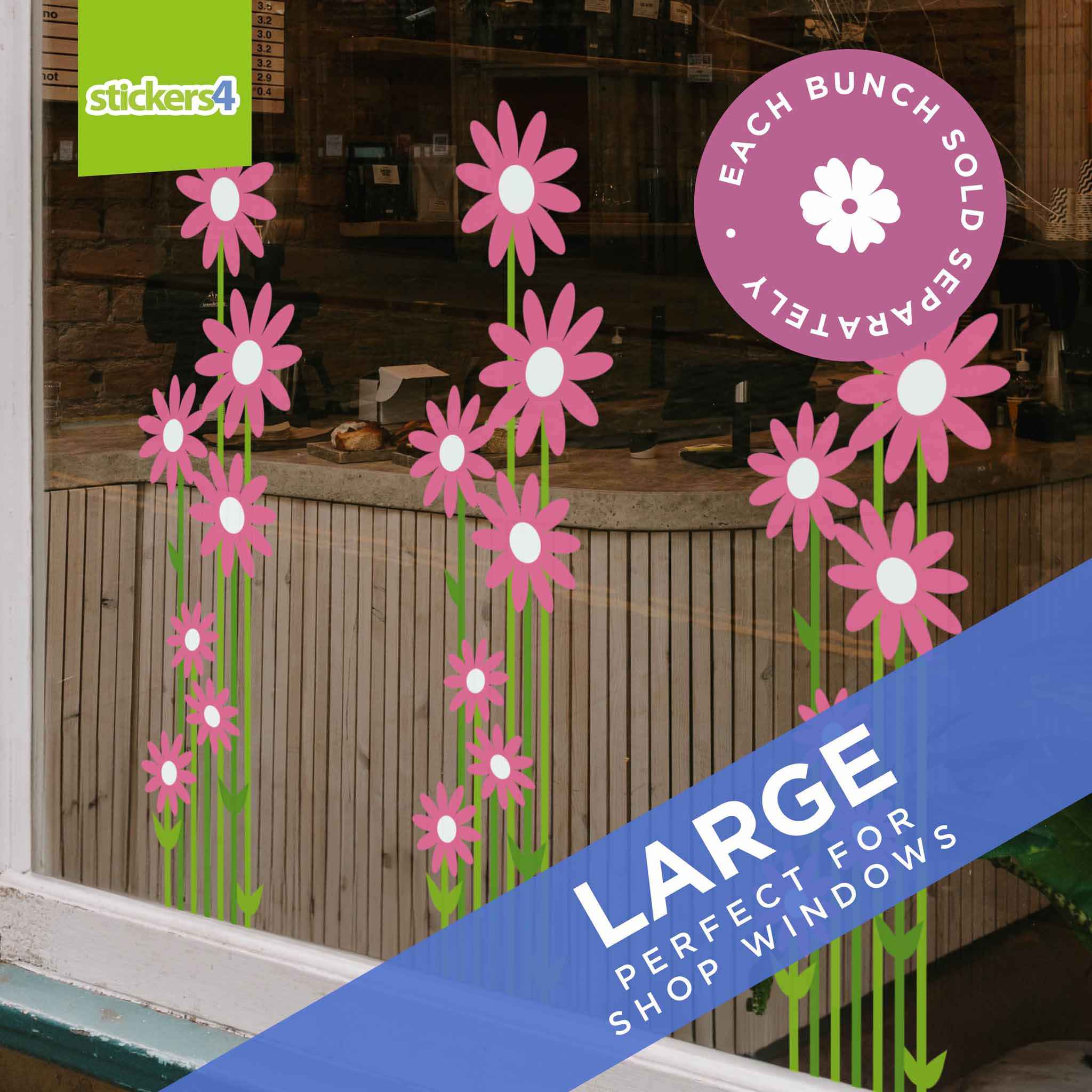A large, tall static cling window sticker showing Daisy Stems with different coloured flower options.