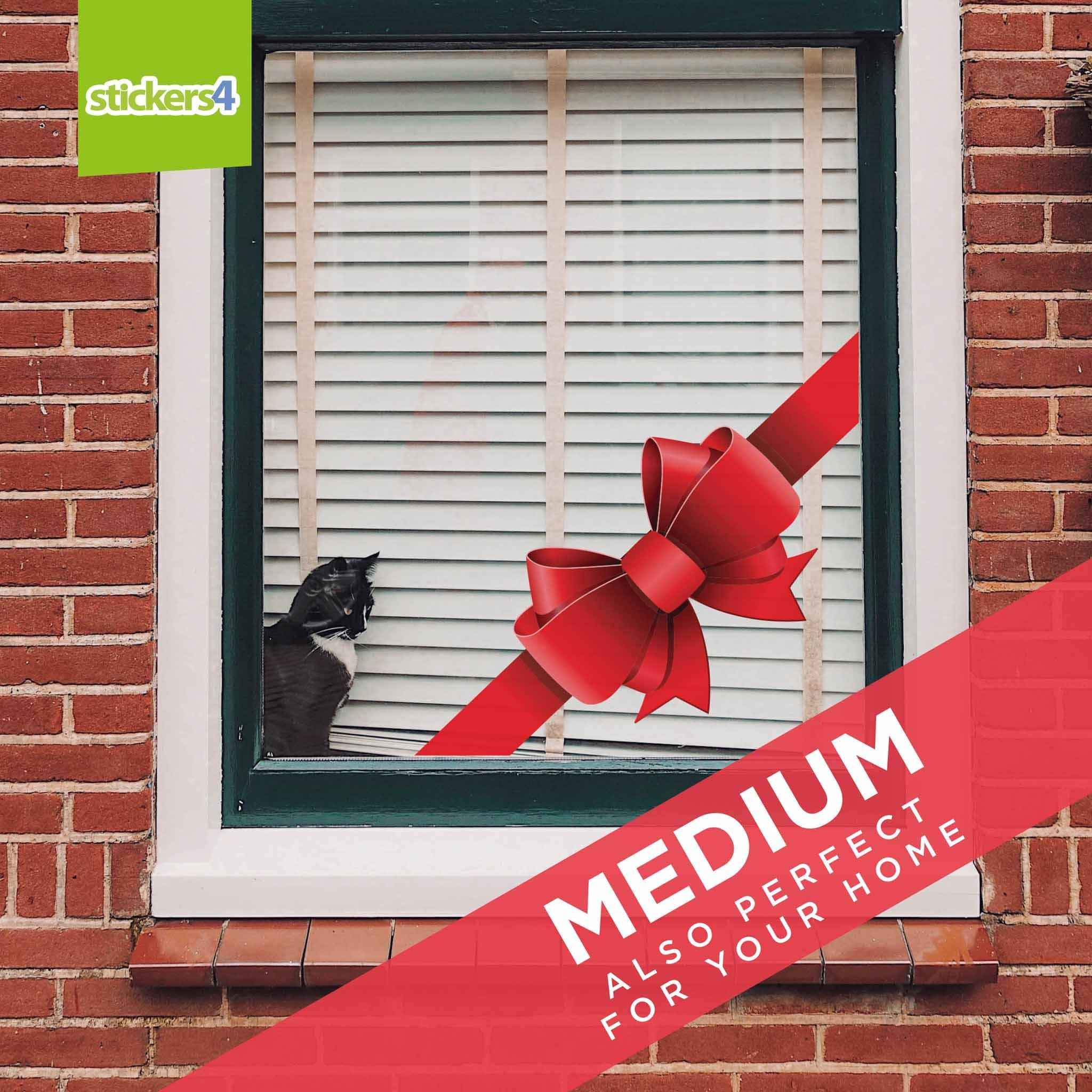 A lovely bright Red Corner Bow double-sided static cling window sticker, available in a range of sizes to suit all windows. Perfect for retail shop windows as well as for use at home. Very easy to apply and reusable, simply re-apply to the backing sheet after use and this decal can be used year after year (so amazing value for money!)