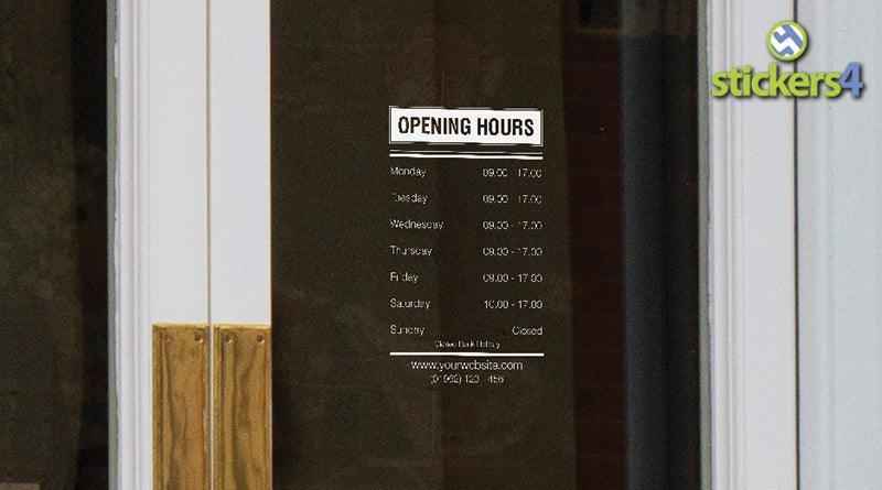 Custom Opening Times Window Sticker x2 Design #4