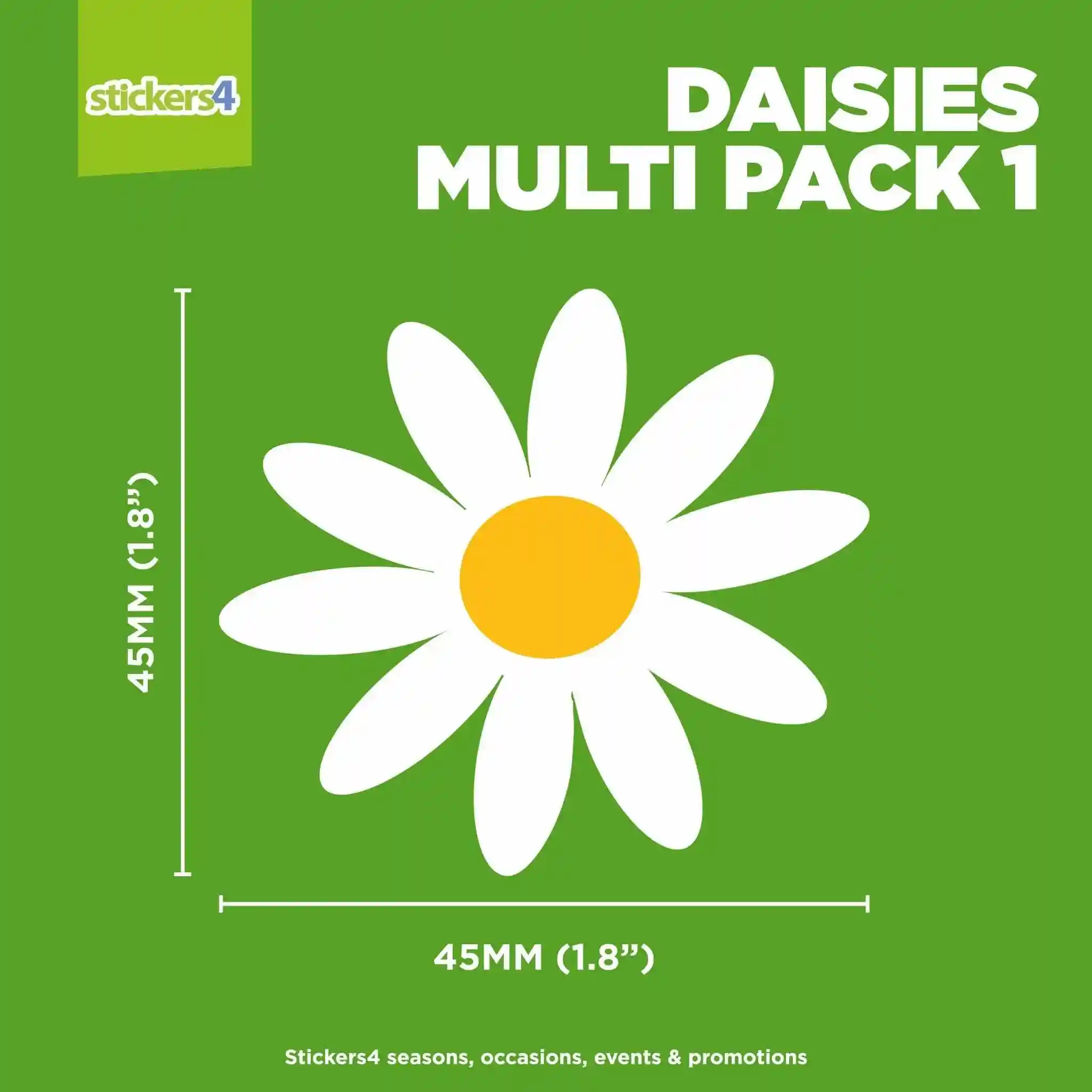 A pack of 60 small daisy window stickers, each measuring approx 45mm across. Perfect for seasonal window displays and car windows