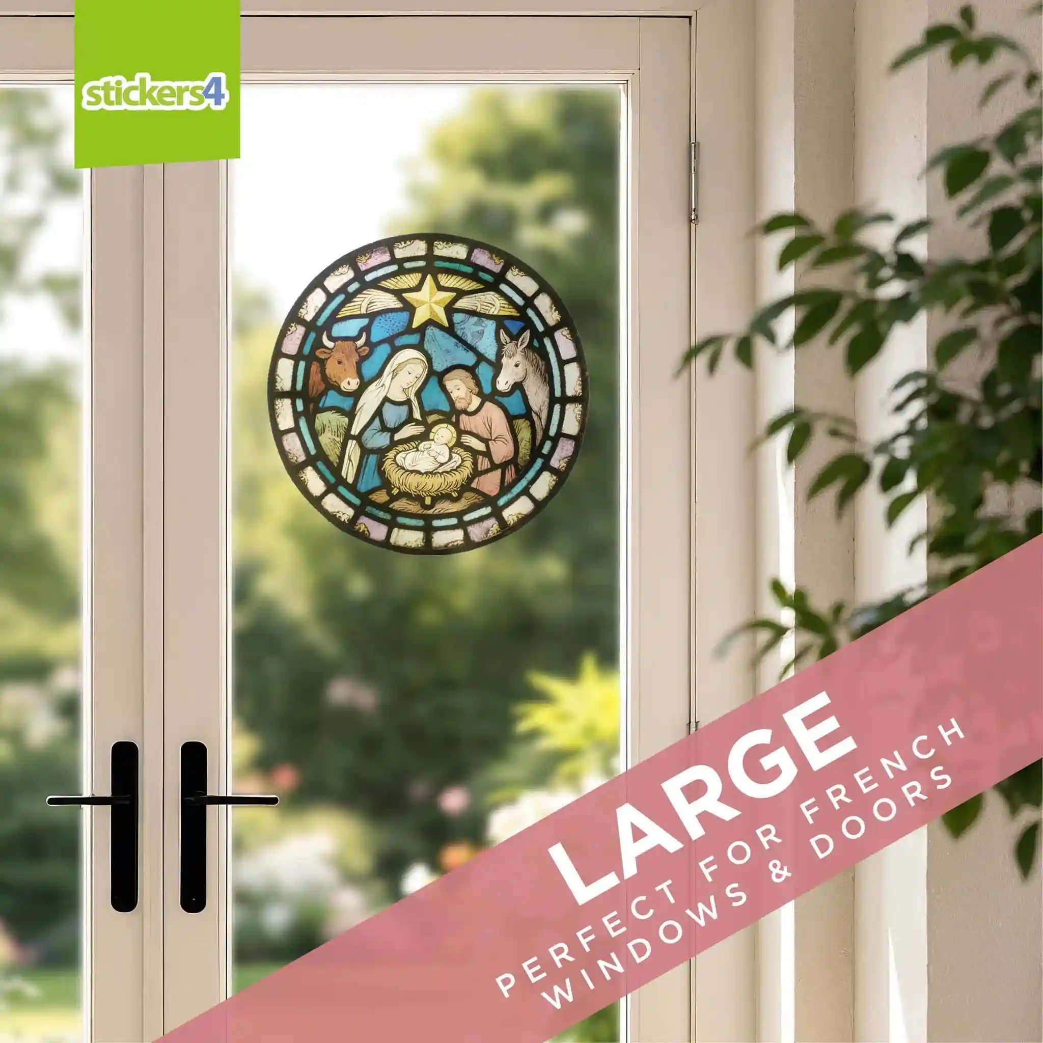 Stained Glass Nativity Window Cling Sticker