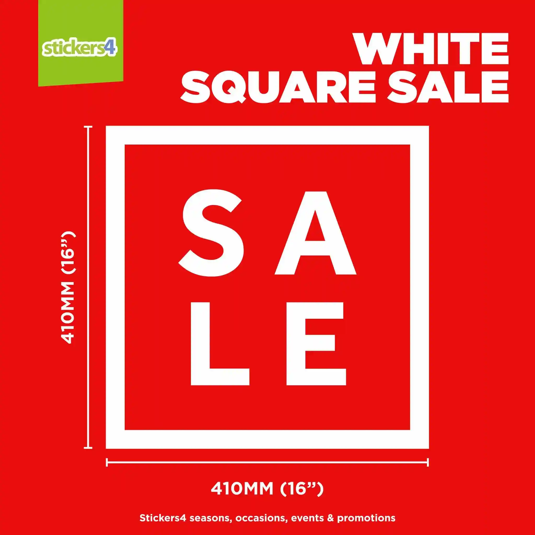 Our White SALE Square window cling sticker features a bold white design and is ideal for your shop this sale season. Its minimalistic design is perfect for all retail shop doors and windows.